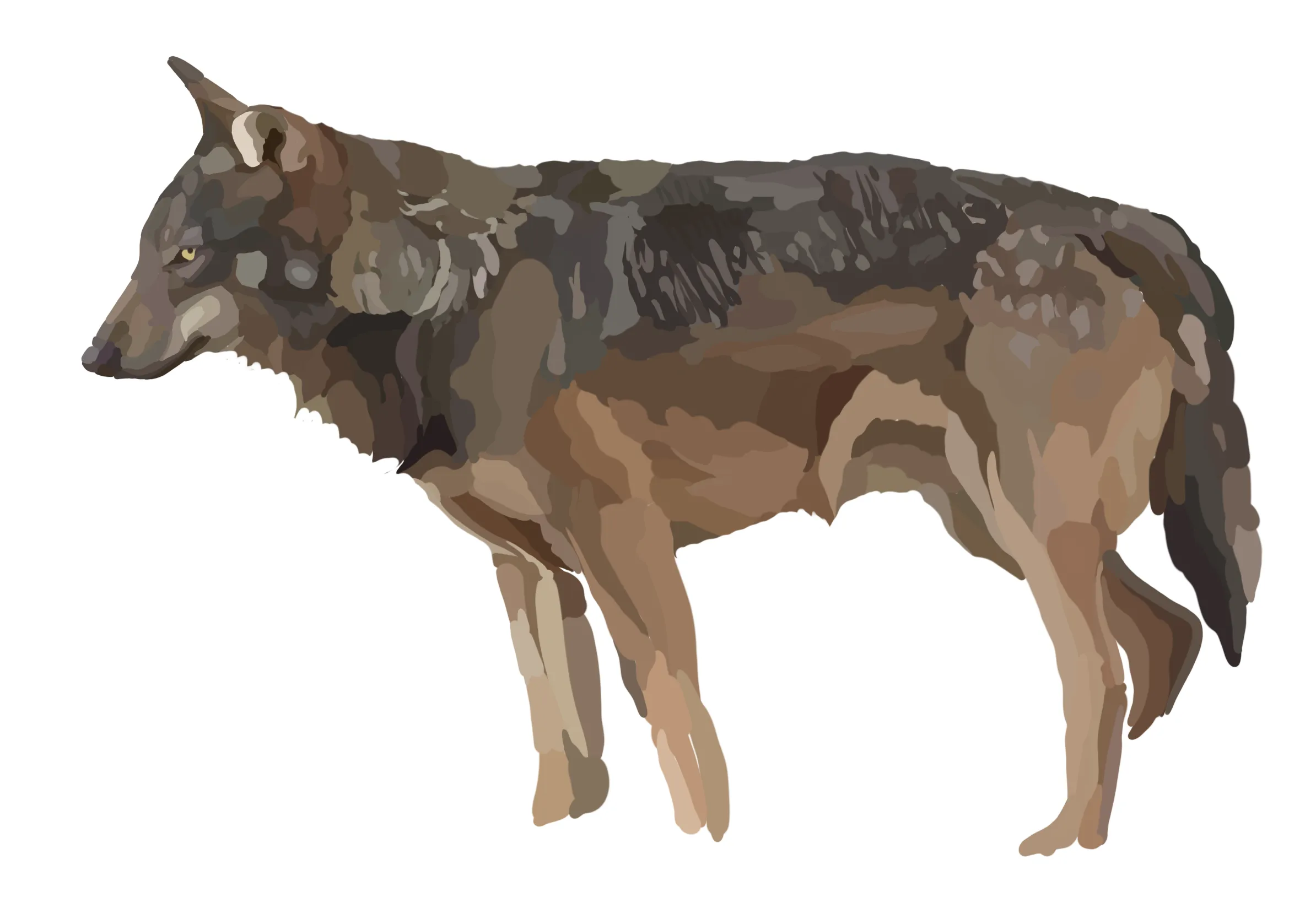 - Pelo generalmente più scuro, grigio-nerastro, marrone e fulvo.